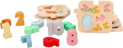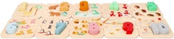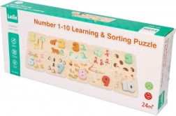 Acest set educațional din lemn de înaltă calitate susține abilitățile matematice timpurii. Copiii asociază numerele 1–10 cu piesele corespondente cu animăluțe, dobândind în mod natural numărarea și sortarea. Construcția durabilă din lemn și culorile intense încurajează jocul repetat.