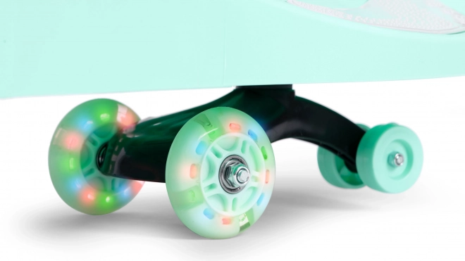 Roțile se aprind în timpul mersului cu lumini LED multicolore. Aspectul spectaculos îi încântă pe copii și, în același timp, crește vizibilitatea la lăsarea serii.