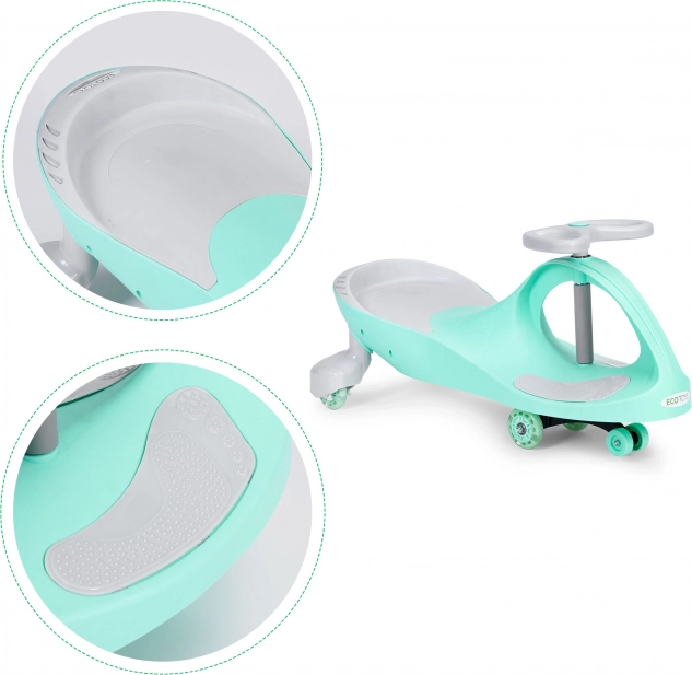 Vehiculul wiggle car ECOTOYS transformă fiecare plimbare într-o aventură. Datorită sistemului special, este propulsat doar prin mișcarea circulară alternantă a ghidonului la stânga și la dreapta, dezvoltând echilibrul și motricitatea copiilor. Construcția ușoară, dar rezistentă este ideală pentru utilizare în interior și pe suprafețe netede în aer liber.