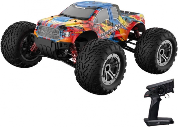 Cu mașina Ford F-150 Raptor cu telecomandă, vei experimenta o conducere dinamică, asigurată de tracțiunea integrală 4x4 și șasiul de aluminiu. Construcția rezistentă la umiditate îți permite să ieși în aventură indiferent de vreme.