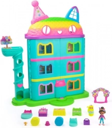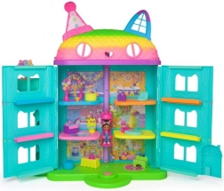 Fermecătoarea căsuță de petrecere a pisicii GABBY'S DOLLHOUSE (aprox. 60 cm) abundă în culori, idei și distracție interactivă. Copiii pot explora cu ajutorul liftului pisicuță șase încăperi tematice și, rotind acoperișul, pot descoperi mansarda secretă. La apăsarea butonului se aud până la 10 sunete și replici îndrăgite din serial, care amplifică atmosfera de joc.