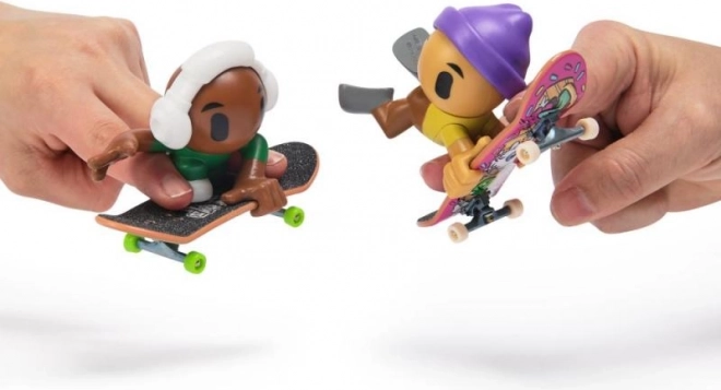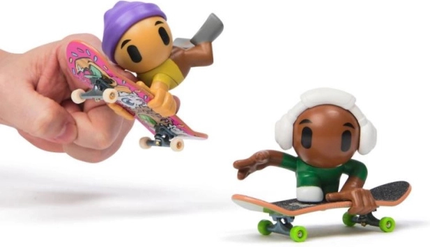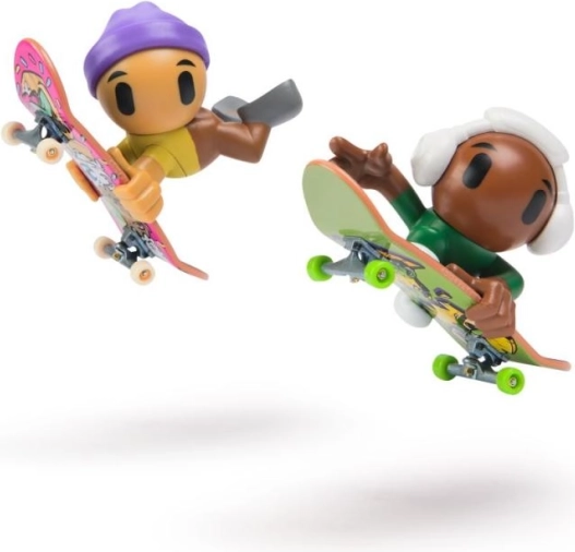 Fiecare pachet include 2 fingerboarduri realiste Tech Deck și 2 figurine stilate Sk8 Crew. Aplică stickerele, atașează riderii și începe imediat să exersezi trick-uri noi.