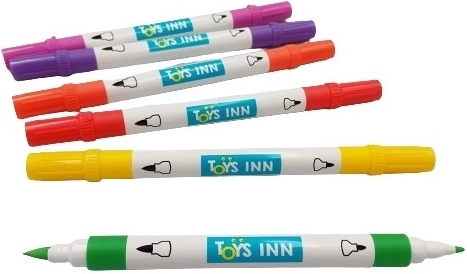 Set de 12 markere acrilice echipate cu două vârfuri de grosimi diferite. Markerele sunt ideale pentru colorat, realizarea de picturi sau ilustrații și pot fi folosite și pentru alte tehnici decorative.