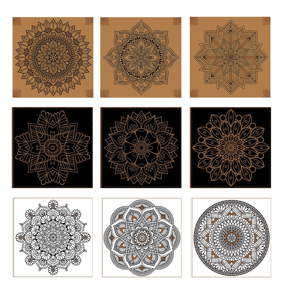 Descoperă lumea relaxantă a mandalelor cu acest set care conține 9 tablouri de colorat. Mandalele sunt tipărite pe trei culori de fundal – alb, negru și bej – și sunt decorate cu folie metalică aurie pentru un efect elegant. Sunt ideale pentru relaxare creativă, lucrul cu culorile și decorarea interiorului. Tablourile finalizate pot fi pliate și expuse pe o poliță sau agățate pe perete.