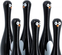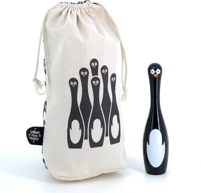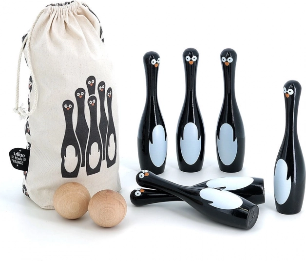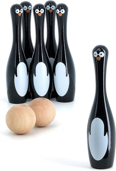Setul conține șase popice în formă de pinguini și două bile de lemn. Acest joc nu doar că oferă ore de distracție, dar ajută și la dezvoltarea motricității și agilității. Popicele au fost fabricate în Franța folosind un proces tradițional de lăcuire, asigurând o calitate înaltă și durabilitate.