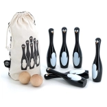 Întregul set este disponibil într-un săculeț de bumbac practic, ceea ce facilitează nu doar transportul acestuia, ci și depozitarea. Jucăria poate fi luată cu ușurință în excursii sau în vacanțe, astfel încât copiii să aibă mereu la îndemână distracția preferată. Arătați-vă îndemânarea și doborâți cât mai multe popice dintr-o singură aruncare!