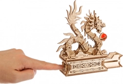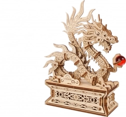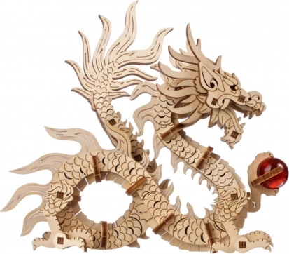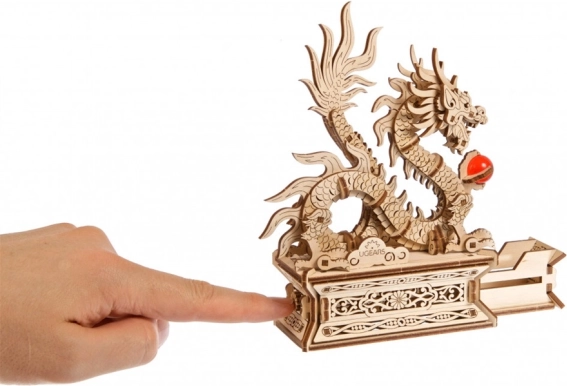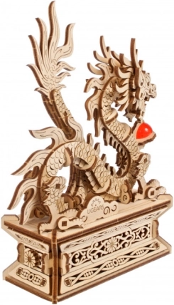 Modelul este complet mobil, iar dragonul poate fi îndepărtat cu ușurință de pe soclu. În baza acestuia se află un compartiment secret – apăsând butonul discret din motivul floral veți descoperi un spațiu pentru un mesaj personal, un talisman sau plicul roșu de Anul Nou „hóngbāo”. Piesele sunt predecupate și se îmbină perfect, astfel că nu aveți nevoie de adeziv, iar asamblarea devine o plăcere.