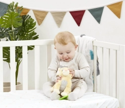 Jucărie din pluș ușoară și moale, ideală pentru pătuț sau cărucior. Un companion grozav pentru somn și joacă.