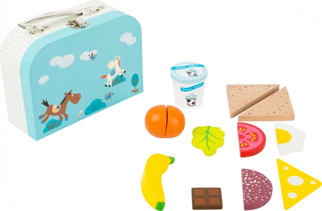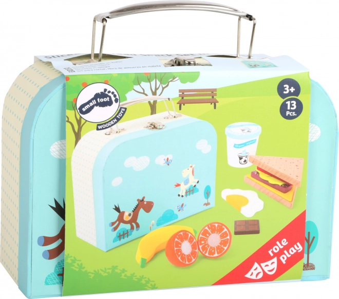 Geantă pentru gustări stilată și durabilă, în culoare albastră, de la marca Small Foot, ideală pentru bucătăriile de jucărie și jocurile de magazin. Este fabricată din lemn de calitate, respectă standardele stricte EN 71 și folosește vopsele sigure, rezistente la salivă. Susține motricitatea fină, percepția senzorială și oferă distracție de durată copiilor de la 3 ani.