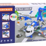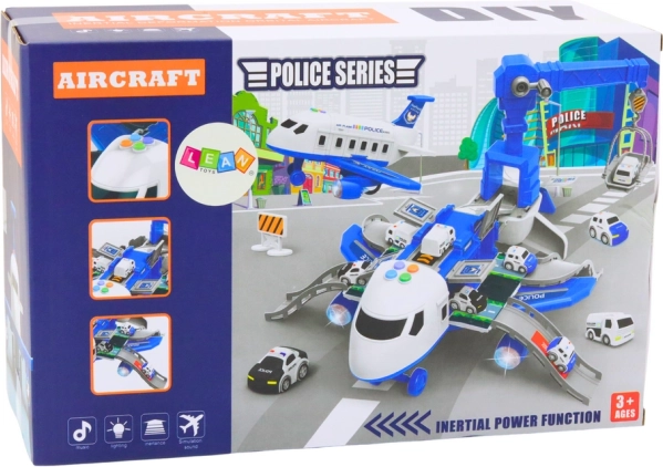 După deschidere, avionul se transformă într-o stație mobilă de poliție, de unde pleacă trei vehicule de intervenție metalice. Pe acoperiș se află o platformă specială care, la apăsarea unui buton, „lansează” mașina de poliție pentru intervenții rapide. Sunt incluse semne rutiere, conuri și copaci pentru construirea propriilor scenarii. Macaraua rotativă 360° și platforma de ridicare acționată cu rotiță adaugă și mai multe posibilități de joc.