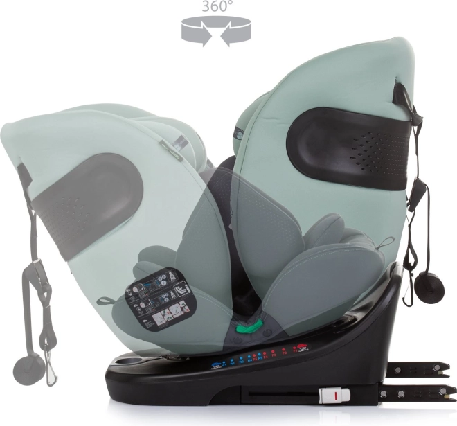 Baza rotativă permite plasarea ușoară a copilului în scaun și utilizarea în ambele direcții de mers.