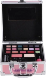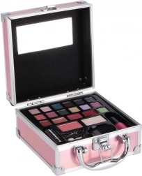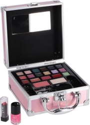 Mini trusă de machiaj roz, stilată, pentru uz zilnic și călătorii. Conține tot ce ai nevoie pentru un machiaj rapid: 14 farduri de pleoape, culori strălucitoare pentru buze, fard de obraz și pudră, ruj și lac de unghii. Oglinda, pensula pentru fard de obraz, aplicatorul tip burețel și pensula pentru buze asigură aplicarea comodă acasă și în deplasare.