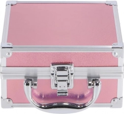 Eleganta trusă cosmetică roz, în format compact, oferă organizare clară și un set complet pentru machiajul ochilor, obrajilor și buzelor. Corpul din aluminiu, cu închidere metalică, este rezistent și în același timp ușor, ideal pentru geantă sau călătorii.
