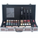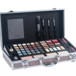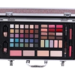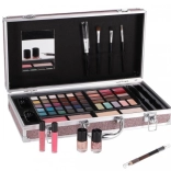 Descoperă setul complet pentru machiaj într-o singură geantă elegantă, cu aspect de cupru. Găsești tot ce ai nevoie pentru make-up zilnic sau de seară: o gamă largă de farduri de ochi, produse pentru buze, farduri de obraz, pudre, corectoare și instrumente pentru aplicare precisă. Datorită oglinzii integrate, te poți machia confortabil oriunde.