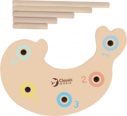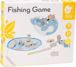 Descoperă jocul distractiv și educativ pentru copii – pescuit de peștișori din lemn de la CLASSIC WORLD. Acest set ingenios oferă 3 jocuri în 1: pescuit cu magnet, joc de echilibru și sortarea peștișorilor după culori și numere. Susține motricitatea fină, coordonarea mână–ochi, concentrarea și învățarea culorilor și numerelor. Fabricat din lemn de calitate în culori atractive, ideal pentru distracție în familie.