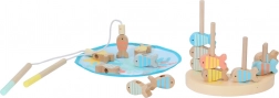 Două undițe magnetice și peștișori colorați cu inele metalice antrenează precizia și coordonarea mână–ochi. Cine prinde mai mulți peștișori din „lac”?