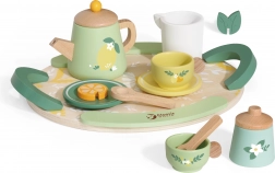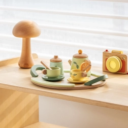 Setul de ceai este realizat din lemn de calitate pentru durabilitate și joc în siguranță. Jocul dezvoltă abilitățile sociale, comunicarea și încrederea în sine – ideal pentru momente împărtășite cu prietenii și părinții.