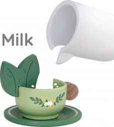 Ceainic, cești, farfurioare, lingurițe, recipiente pentru lapte și zahăr și o tavă spațioasă – toate asortate în culori pastelate delicate pentru scenarii de joc nesfârșite.