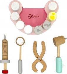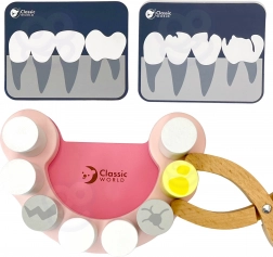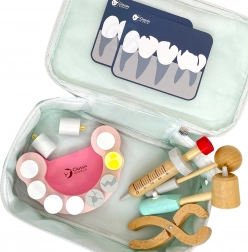 Descoperă jocul distractiv și educativ de-a dentistul cu setul Classic World. Acest set din lemn, într-o geantă practică, conține tot ce are nevoie micul doctor pentru îngrijirea dinților – de la un model de maxilar la instrumente. Susține jocul de rol, dezvoltă empatia, motricitatea fină și învață obiceiuri corecte de igienă orală.