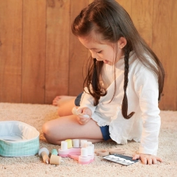 Realizarea premium din lemn natural asigură durabilitate și o viață lungă a produsului. Geanta practică păstrează toate piesele împreună, astfel încât setul este ideal și pentru călătorii. Datorită designului atractiv în culori delicate, este un cadou grozav pentru copiii de la 3 ani.