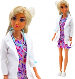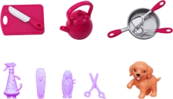 - Păpușă, mai multe ținute (halat, șorț, haine de timp liber), încălțăminte, accesorii tematice (ex. stetoscop, ustensile de bucătărie, accesorii pentru animăluț)