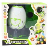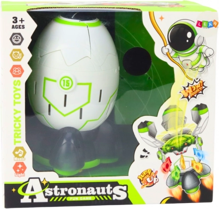 Introduceți bețișoarele în jurul cosmonautului – orificiul „potrivit” declanșează surpriza, iar figurina sare din rachetă.
