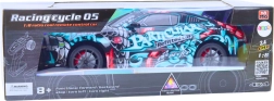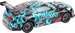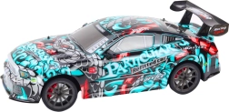 Designul graffiti stilizat în negru și turcoaz oferă mașinii un aspect modern inspirat de mașinile de curse reale.