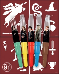 - Motive licențiate Harry Potter – casele, Relicvele Morții, Vifiezoarea de Aur, ochelarii cu cicatrice și alte simboluri din lumea magiei.