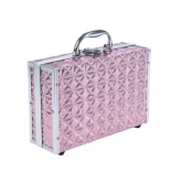 Troller roz cu suprafață texturată, mâner metalic și închidere fiabilă – arată excelent și îți protejează cosmeticele acasă și în călătorii.