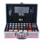 Troller cosmetic roz, stilat, cu echipare completă pentru machiaj, potrivit pentru uz zilnic și călătorii. Oferă 24 de farduri de pleoape, sclipici și glossuri de buze, farduri de obraz și pudre, pensule și aplicatoare practice, precum și oglindă integrată. Construcția solidă și compartimentele bine organizate asigură că vei avea cosmeticele mereu la îndemână și perfect ordonate.