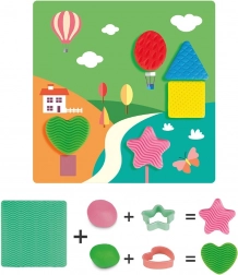 Bucățile colorate și texturate stimulează imaginația copiilor.
