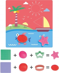 Jocuri din Plastilină – Forme Geometrice este un set educațional care dezvoltă imaginația și creativitatea copiilor, și totodată îmbunătățește motricitatea fină și coordonarea mână-ochi.
