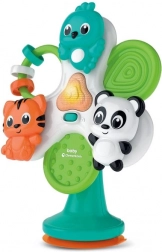 Caruselul cu animăluțe este o jucărie interactivă grozavă pentru bebeluși și toddleri. Trei animăluțe colorate se rotesc în cerc și în jurul propriei axe, invitând la explorare. Datorită ventuzei stabile, jucăria se fixează ușor pe masă sau pe tava scaunului de masă – distracția rămâne în siguranță la locul ei.