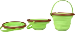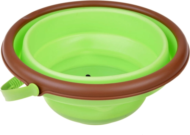 Găletușa se pliază într-o formă plată cu înălțimea de aproximativ 5 cm, astfel încât încape ușor în rucsac sau cărucior. O soluție ideală pentru excursii, vacanțe și locuințe mici.