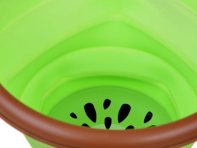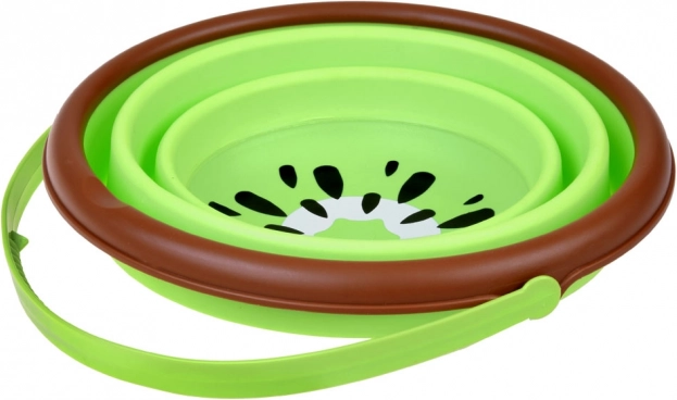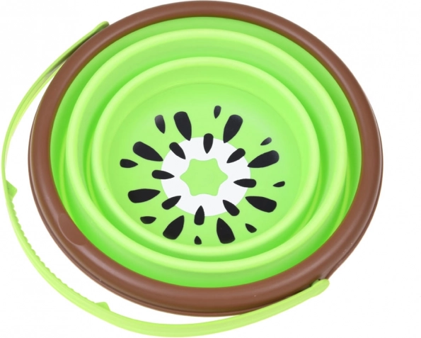 Această găletușă pliabilă din silicon, cu motiv fructat de kiwi, este un companion grozav pentru micii exploratori. Se desface într-o clipă, iar după joacă se pliază într-o formă plată, ocupând minimum de spațiu în geantă sau troler. Materialul moale, dar rezistent, este plăcut la atingere și blând cu mânuțele copiilor.