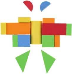 Fiecare cărămidă este în culori vii - galben, albastru, roșu, verde - atrag atenția copiilor și susțin dezvoltarea percepției vizuale.