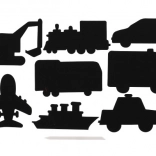 Setul include 8 designuri diferite de zgâriere, inclusiv un avion, o mașină, un tren și alte modele.
