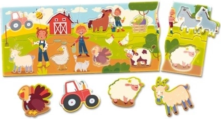 Puzzle pentru cei mici, proiectat pentru dezvoltarea competențelor de bază ale copiilor cu vârste între 1 și 4 ani. O imagine complexă a fermei aduce bucurie și distracție.