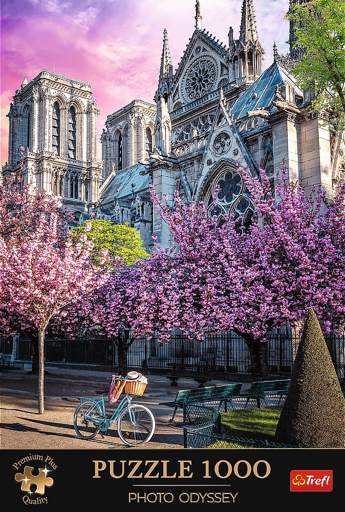 Descoperiți frumusețea Parisului cu motivul Catedralei Notre‑Dame surprinsă în nuanțe delicate de cireși de primăvară. Puzzle‑ul de 1000 de piese se remarcă prin tipar clar și detalii fidele, astfel încât vă veți bucura de asamblare de la prima până la ultima piesă. După asamblare, rezultă o imagine de 48 × 68,3 cm, perfectă și pentru înrămare.