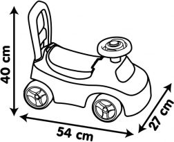 Descoperiți un ride-on ușor și stabil pentru cei mai mici, care susține dezvoltarea echilibrului, coordonării și motricității. Datorită mânerului posterior, servește mai întâi ca premergător de împins, apoi ca ride-on pentru mers independent înainte/înapoi și lateral. Șezutul, la o înălțime de cca 20 cm, este confortabil, iar dedesubt găsiți un compartiment de depozitare practic pentru mărunțișuri.