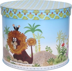 Vă prezentăm cutia rotundă cu motiv de Krtko și leu, care este nu doar un accesoriu estetic, ci și practic pentru orice cameră de copil. Datorită dimensiunilor sale compacte de 25 x 25 x 21 cm oferă suficient spațiu de depozitare pentru jucării, cărți sau alte comori ale copiilor.