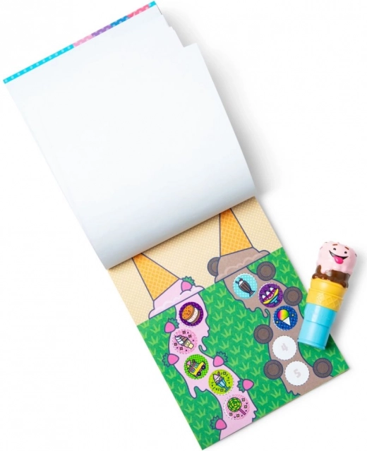 Ștampila amuzantă în formă de înghețată creează autocolante multicolore cu motive de desert. Copiii își antrenează motricitatea fină și creează imagini vesele fără mizerie.