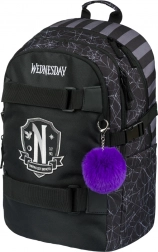 Descoperă confortul și funcționalitatea într-un singur produs. Acest rucsac cu design întunecat și stilat, cu motiv Wednesday, oferă o compartimentare bine gândită: trei compartimente separate cu organizator interior, buzunar încăpător pentru laptop sau tabletă de 15" și buzunare laterale rezistente, potrivite pentru sticla de apă. Greutatea redusă de 850 g și volumul de 25 l asigură gestionarea ușoară a echipamentului școlar zilnic.