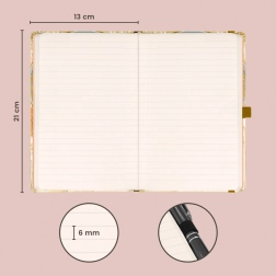 În interior găsești 172 de pagini pe hârtie galbenă de calitate, ideală pentru scrisul de zi cu zi. Caietul este excelent ca jurnal, pentru notițe de lucru, planificare și idei creative. Buzunarul interior poate ține mărunțișuri, cărți de vizită sau autocolante.