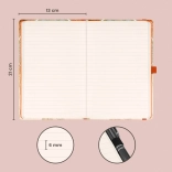 Caiet dictat elegant cu motivul Alfons Mucha – Pictură, cu coperți rigide, oferă închidere practică cu elastic, buclă pentru stilou/creion și buzunar interior. În interior are 172 de pagini pe hârtie galbenă plăcută, ideal pentru notițe, jurnal și idei de lucru.