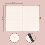 Caiet dictat elegant, cu motivul ALFONS MUCHA – Poezie, în format practic 13 × 21 cm. Oferă coperți rigide cu închidere cu elastic, buclă pentru stilou și buzunar interior. În interior găsești 172 de pagini punctate pe hârtie galbenă pentru ideile tale, jurnal sau notițe de lucru.