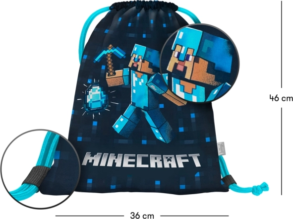 Săculețul stilat MINECRAFT Blue Axe este ideal pentru școală, cluburi și activități în timpul liber. Datorită materialului durabil și lavabil rezistă la utilizare zilnică și se întreține ușor curat. Șnururile de strângere rezistente servesc totodată ca bretele pentru umeri, astfel încât puteți purta săculețul confortabil pe spate.
