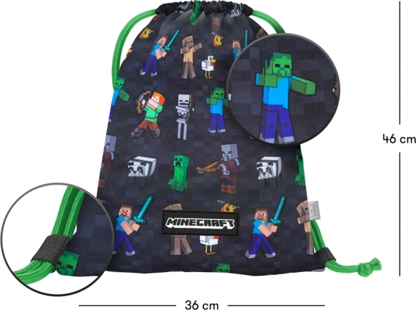 Săculețul BAAGL, stilat și durabil, cu motiv licențiat MINECRAFT, este ideal pentru transportul papucilor de interior, al încălțămintei sportive și al altor mici obiecte. Datorită șnururilor rezistente, servește și ca un rucsac practic, util atât pentru copii, cât și pentru adulți, la școală, cluburi și activități recreative.