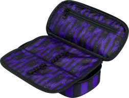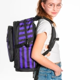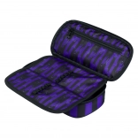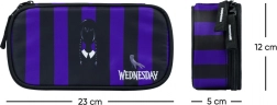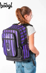 Setul Cubic Wednesday include un rucsac stilat, un penar practic și un săculeț pentru încălțăminte, toate într-un design modern cu dungi negre și mov. Rucsacul este proiectat pentru a îndeplini cerințele ergonomice, în timp ce penarul și săculețul asigură organizarea materialelor școlare și a activităților de timp liber.