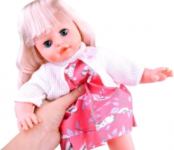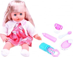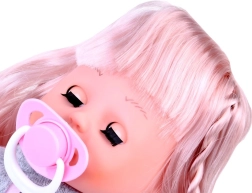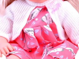 Această păpușă cu păr lung blond și hăinuță roz drăgălașă are un corp moale, ideal pentru îmbrățișat. Când este culcată, își închide ochii, adăugând realism jocului. Datorită accesoriilor incluse, copiii își dezvoltă motricitatea fină, empatia și imaginația.